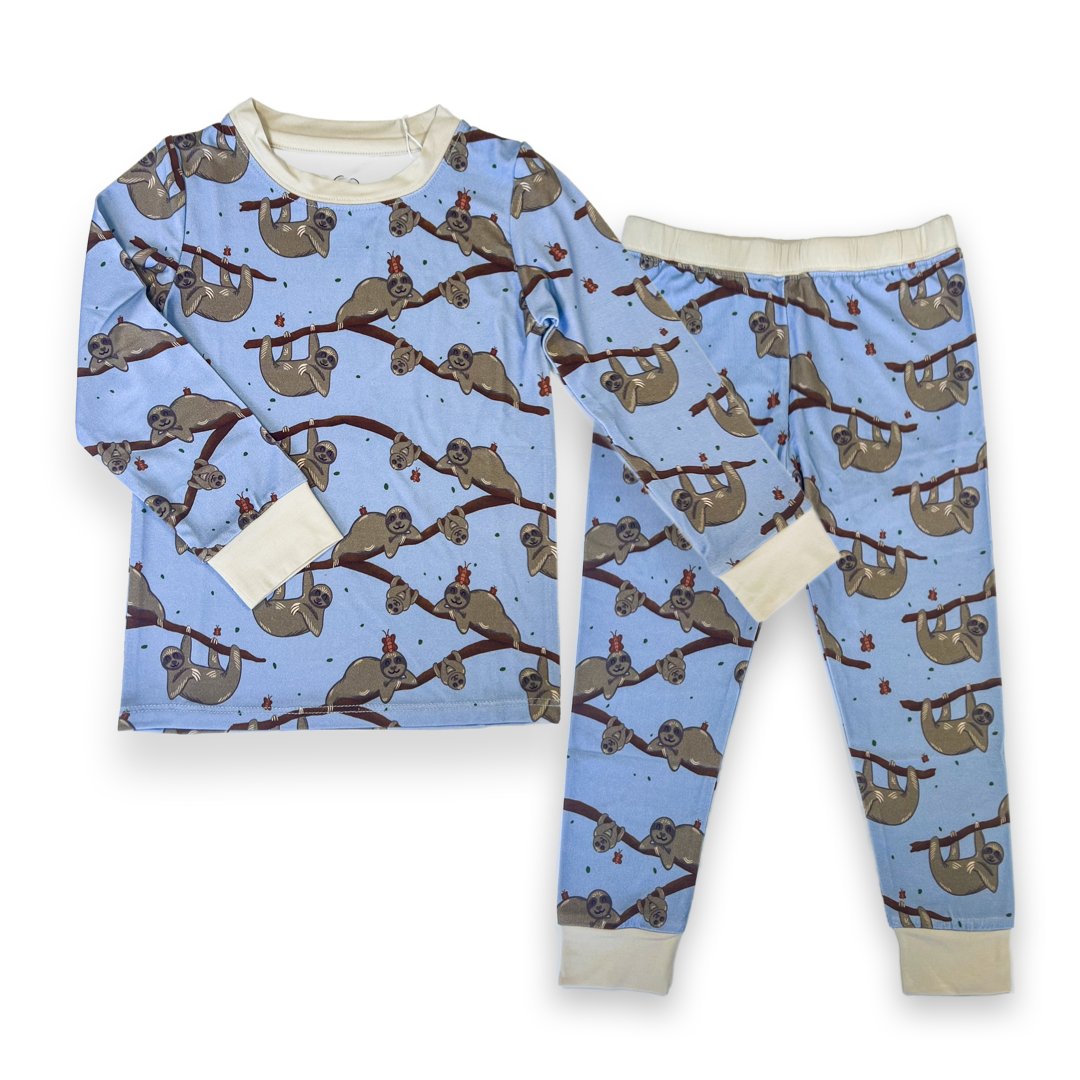 Experience ultimate comfort with our super-soft viscose from bamboo blend pajamas. This cozy set includes a long-sleeved shirt and coordinating pants, designed for a snug fit to ensure a restful night’s sleep. Featuring unique hand-drawn Sloths, these two-piece pajamas offer both style and comfort, making them the perfect choice for a peaceful night's rest.